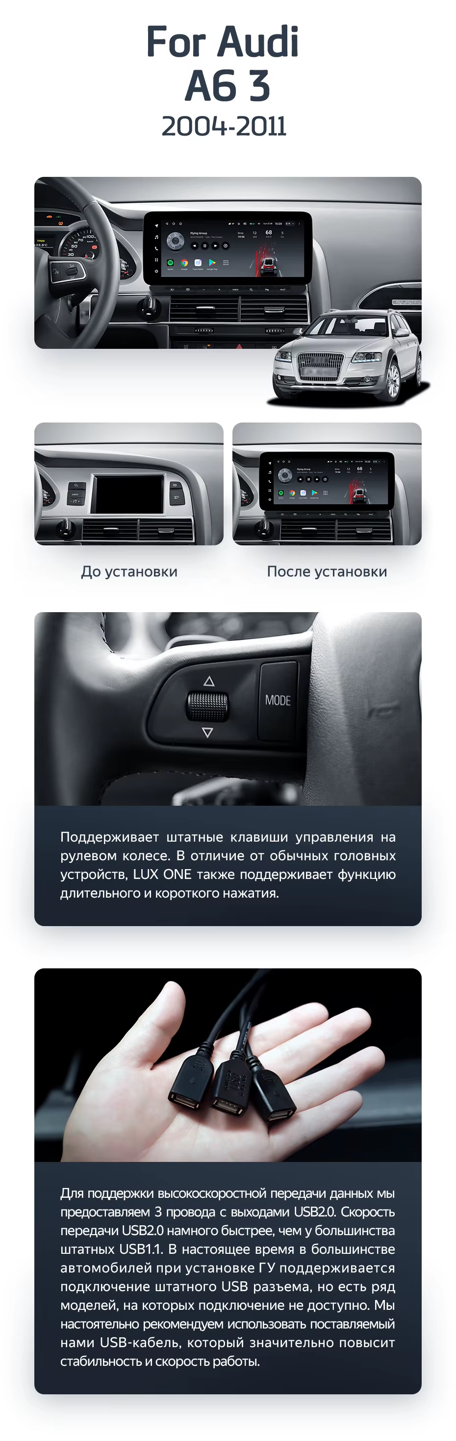 Штатная магнитола Teyes LUX ONE 6/128 Audi A6 3 C6 (2004-2011) - купить всего за 47 500 руб. в интернет-магазине в Новороссийске Teyes.com.ru. ✓ Самый лучший выбор мультимедиа ✓ Лучшая замена штатному ГУ ✓ Тел. +7 (800) 775-31-74