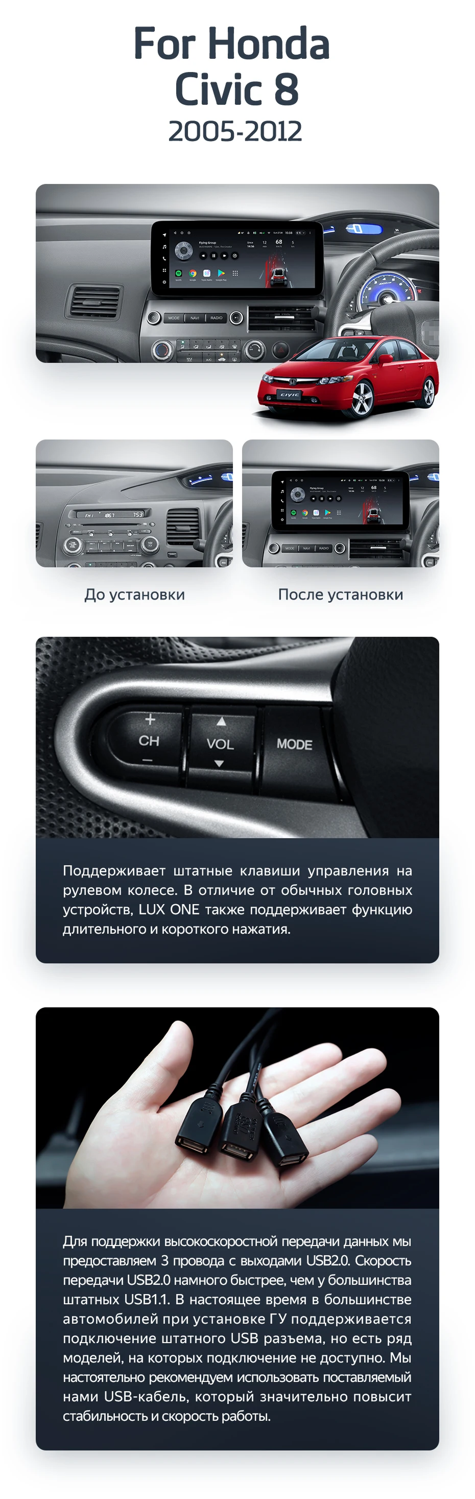 Штатная магнитола Teyes LUX ONE 6/128 Honda Civic 8 FK FN FD (2005-2012) Правый руль - купить всего за 50 500 руб. в интернет-магазине в Новороссийске Teyes.com.ru. ✓ Самый лучший выбор мультимедиа ✓ Лучшая замена штатному ГУ ✓ Тел. +7 (800) 775-31-74