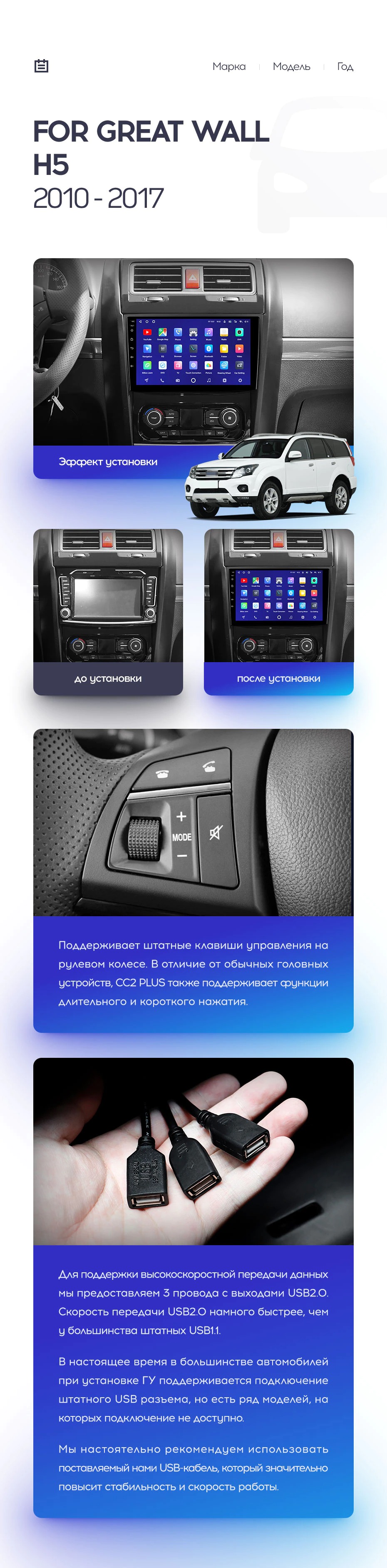 Полный комплект установки магнитолы Teyes с рамкой и проводкой можно выбрать в каталоге штатных магнитол Great Wall Hover H5 (2010-2017).