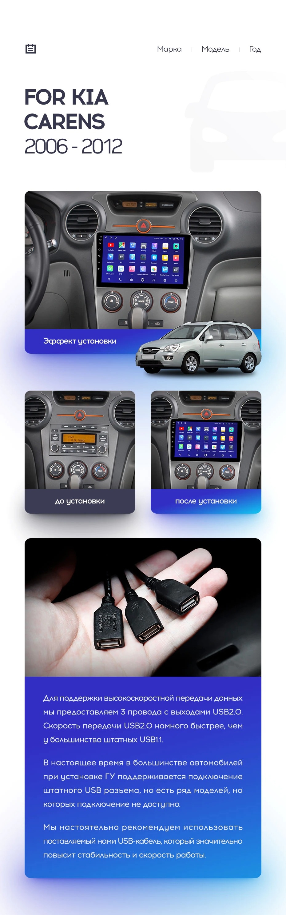 Полный комплект установки магнитолы Teyes с рамкой и проводкой можно выбрать в каталоге штатных магнитол Kia Carens UN (2006-2012).