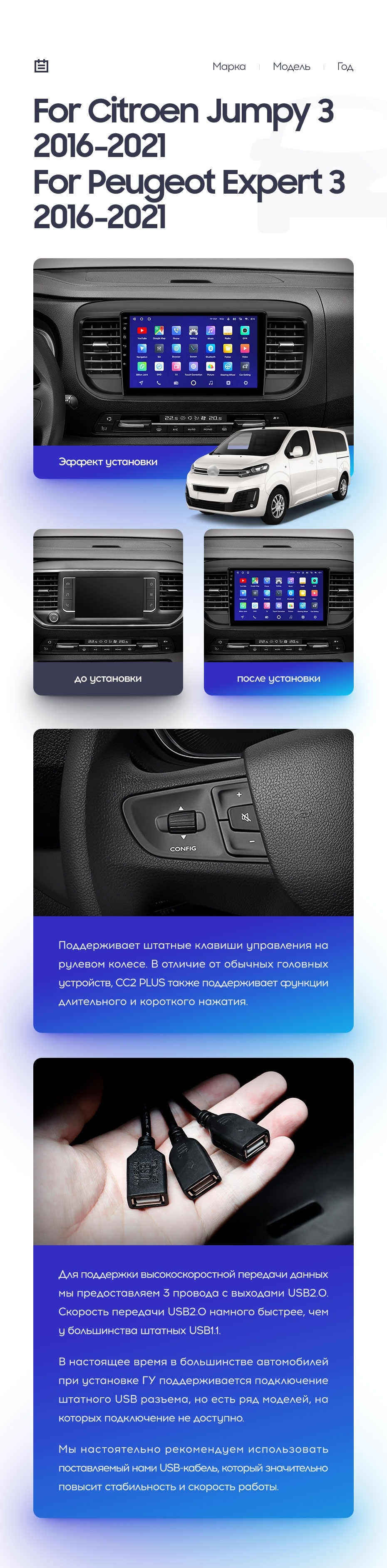 Полный комплект установки магнитолы Teyes с рамкой и проводкой можно выбрать в каталоге штатных магнитол Citroen Jumpy 3 SpaceTourer (2016-2021).