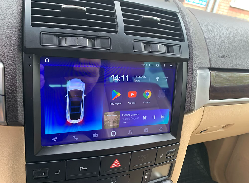 Полный комплект установки магнитолы Teyes с рамкой и проводкой можно выбрать в каталоге штатных магнитол Volkswagen Touareg GP (2002-2010).